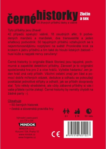 Black Stories: Crime and Sex – 50 chilling tales full of passion and crime. A cooperative deductive party game for groups. Suspense and fun any evening.