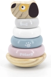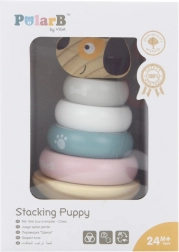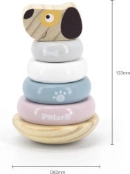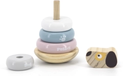 This stacking pyramid with a dog motif brings children the joy of discovery and learning. Smooth wooden pieces in soft pastel colors are easy for little hands to hold, and stacking the rings onto the peg supports concentration, patience, and spatial awareness. The stable base ensures safe play, and the friendly dog head motivates repeated stacking.