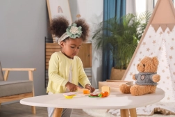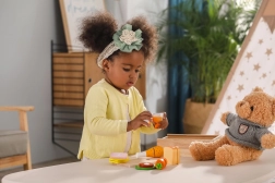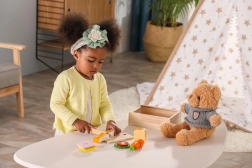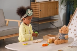 Children can pretend to cook or shop, which is a great way to teach them about healthy eating and grocery shopping. The set supports fine motor skills and creative play in a safe and friendly environment.