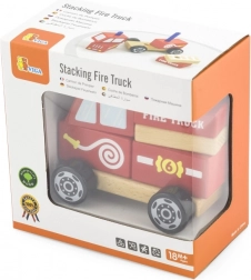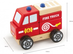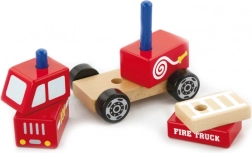 Stack the individual wooden pieces onto the chassis to create your own fire truck. Kids practice patience and coordination step by step.