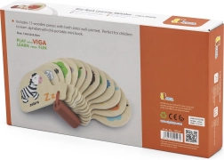 The wooden alphabet learning book from the renowned manufacturer Viga Toys is ideal for children from 12 months and perfect for both preschool and home. Educational cards help with learning the alphabet and first English words.