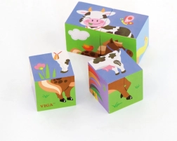 The VIGA Farm wooden puzzle offers a catchy block game where kids piece together cheerful images of farm animals. Each side of a cube creates a different picture, so just 4 cubes make up to 6 distinct illustrations. It’s great for first logic tasks and learning through play.