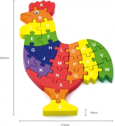 Embark on a fun educational journey with the wooden 3D puzzle rooster, which not only supports alphabet learning but also develops children's fine motor skills and logical thinking. Each piece is marked with a letter of the English alphabet, supporting letter recognition and language skills.