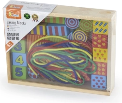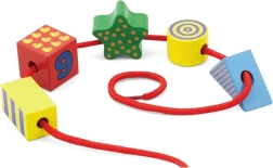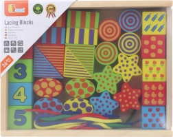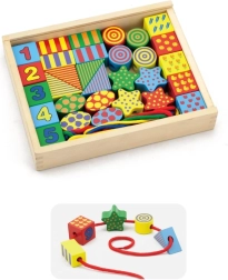 Discover creative play with the VIGA wooden lacing set – a box full of colorful shapes to thread onto strings like beads. Supports fine motor skills, hand–eye coordination, and learning colors and shapes. Pieces made of high-quality wood with non-toxic paints and large dimensions for a safe grip.