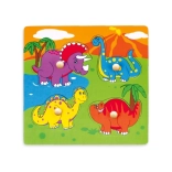 The Wooden Puzzle Colorful Dinosaurs is a perfect educational toy for young children. This colorful puzzle allows children to become familiar with prehistoric creatures like the Triceratops or long-necked dinosaurs. The base and frame handles ensure stability and ease of manipulation, providing your little ones with fun and learning. Wooden handles allow children to easily grasp and place individual dinosaur pieces in the correct spots.