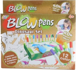 Discover creative fun for little artists with this blow-pen marker set, which includes everything for instant art: 12 colored markers, 8 stencils, 6 sheets of paper, a practical holder with stand, and a blow adapter with pump. Ideal for children aged 4 and up.