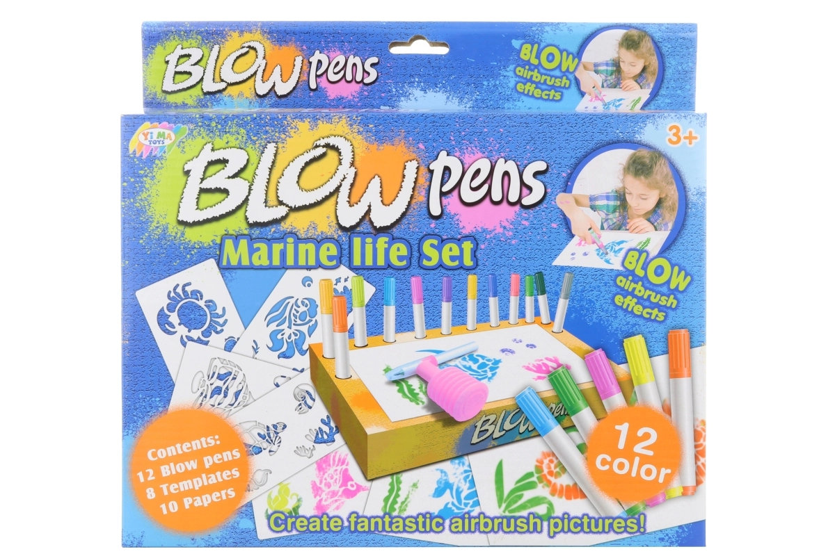Discover a creative world with this large set of blow pens with a sea theme. Children will enjoy easy art-making using stencils and a handy pump attachment. The set supports fine motor skills, creativity, and imagination and is ideal for children aged 3 and up.