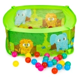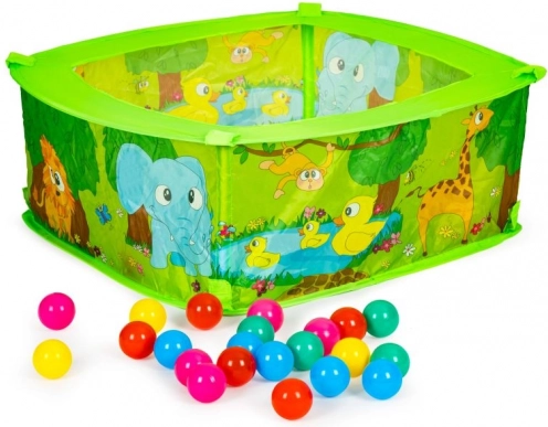 Playpen with a bottom and 50 balls – not for water, dimensions approx. 75 cm x 75 cm x 30 cm. The package includes 50 balls. You can use the ball pit at home in the kids’ room or outside in the garden during summer. Children will have lots of fun playing. Age 6m+