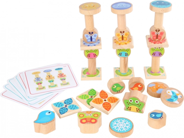 Lucy & Leo Little Friends – wooden balancing game with pattern cards, 33 pieces