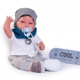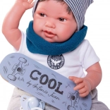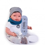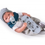 The realistic baby doll Antonio Juan Pipo Hair delights with its gentle expression, finely detailed features, and the ability to pose naturally thanks to joints in the arms and legs. The combination of a soft fabric body and softened vinyl on the head and limbs ensures a very pleasant touch and an authentic look.