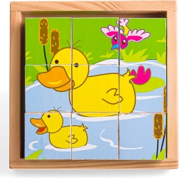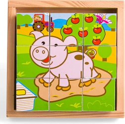 The Animals picture blocks offer children playful discovery through hands-on fun. Nine quality wooden blocks create six different scenes that encourage visual perception and logical thinking. Thanks to the solid design, the blocks are easy for even the youngest children to hold.