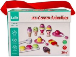 With the stylish Wooden Ice Cream Set from Lelin, every child becomes an ice cream vendor. This set contains 25 colorful parts and is ideal for children over 3 years old. The toys are made of lacquered wood and are packed in a sturdy box with a convenient flap and handle for easy carrying.