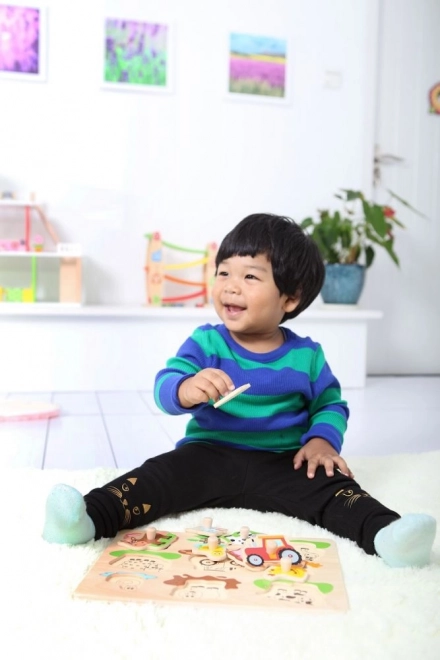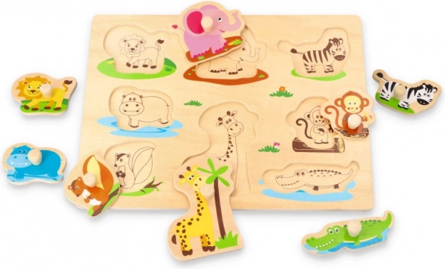 Wooden Jungle Puzzle Board is ideal for developing motor skills and shape recognition in children. The colorful cartoon animal characters on the board provide a fun and educational experience.