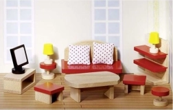 Discover the charm of a classic living room in mini form. This solid wood set is designed for poseable dolls and fits perfectly into Goki dollhouses. Thanks to meticulous workmanship and child-safe finishes, it’s ideal for everyday play.