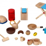 With this beautiful set of 19 wooden toys, children will enjoy hours of fun in a home environment. The set includes various household appliances that boost children's development and understanding of the world around us. It includes toys like a coffee maker, kettle, vacuum cleaner, ironing board, and much more. Each piece is carefully crafted with safety and aesthetics in mind.