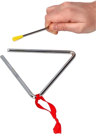 The large metal triangle is a great choice for first steps into the world of percussion. Chrome-plated steel ensures a clean, long sustain, while the practical ribbon allows safe holding or hanging. The triangle is suitable for children aged 3+, music clubs, and both preschools and primary schools.
