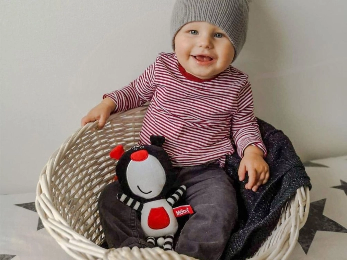 The integrated crinkle foil produces a gentle sound that reminds the baby of familiar stimuli and helps calm them during the day and before sleep.