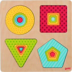 This 4-in-1 multilayer shape sorter by GOKI features cleverly designed layers with colorful shapes that motivate children to explore and learn. Five pieces are tailored so that only the correct shape fits each level – helping children naturally practice hand–eye coordination, patience, and spatial imagination.