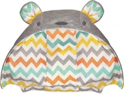 The carrier features a removable hood with a playful bear motif and ears, which protects the child without obscuring their view.