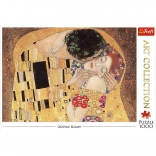 Discover an elegant puzzle from the Art Collection series featuring the famous painting The Kiss. The box includes 1000 pieces that assemble into an image measuring 68 × 48 cm. Premium calendered paper with a gloss finish ensures vibrant colors, durability, and smooth assembling using eco-friendly inks.