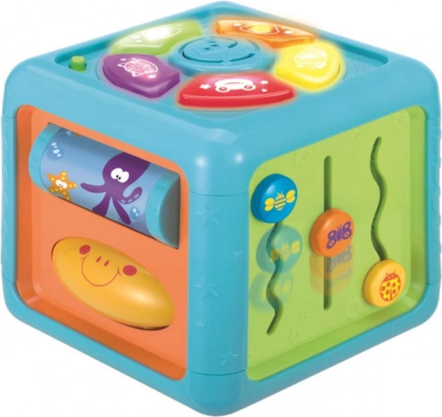 Each side of the cube offers your child many attractions and surprises that will capture their attention for a long time. The toy stimulates all the child’s senses and supports development. Bright, vivid colors, pleasant sounds, and flashing lights encourage your child to play. The educational cube provides great fun for a long time.