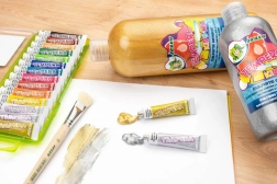 The Jolly tempera paint set offers a colorful palette for both young and old artists. The packaging includes 12 basic colors including unique silver and gold, adding a unique shine to your projects. These bright colors are known for their excellent coverage and easy application.