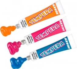 Jolly tempera paints are suitable for various artistic and craft activities, including poster and decoration making. To protect clothing, it is recommended to use a special apron 3+.