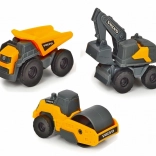 The Volvo construction vehicle set includes three different models: dumper, excavator, and roller. They are made from high-quality plastic and boast a colorful yellow-gray design that will captivate every young builder.