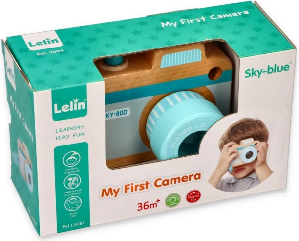 This wooden camera is carefully crafted from quality materials and safe for children aged 3 and up. Realistic elements like the “lens,” viewfinder, and shutter button inspire imaginative play and naturally support children’s creativity.