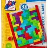 The puzzle includes a game die that adds elements of randomness and gameplay, making each game experience unique.