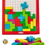 Discover the magic of a wooden puzzle game in the style of Tetris, which consists of colorful geometric pieces. The game is designed to develop spatial imagination and creativity in children from 3 years old. Each piece is made of quality wood and is designed to perfectly fit into the grid.