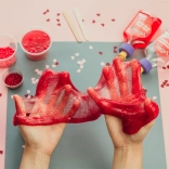 3. Work the slime until you reach the ideal consistency. If it still sticks too much to your hands, add a little more activator.