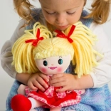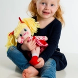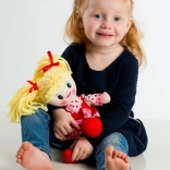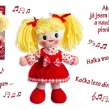 Lucinka is an adorable rag doll, 30 cm tall, perfect for first cuddles and play. Press her tummy and she says (in Czech): “Ahoj, já jsem Lucinka a naučím tě písničky” and sings popular Czech songs that children know and love.