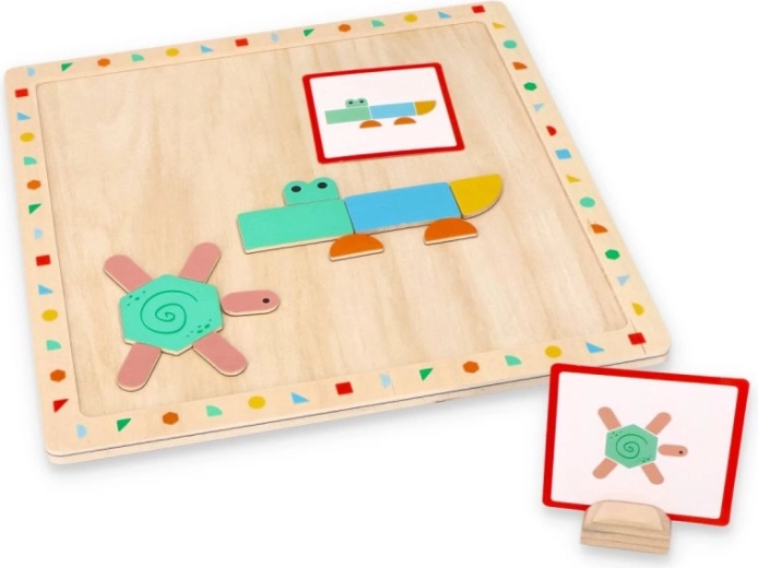 For greater convenience, the set also includes a wooden block with a cutout into which a pattern card can be inserted, making it easier to view and arrange the pattern.