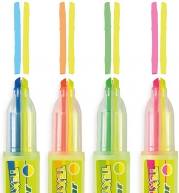 Choose from a colorful range and enjoy the set of 4 two-tone highlighters, which you can use for various purposes. Each highlighter is designed to provide bright and vivid colors for all types of paper. Their compact size and low weight make them easy to carry everywhere with you.