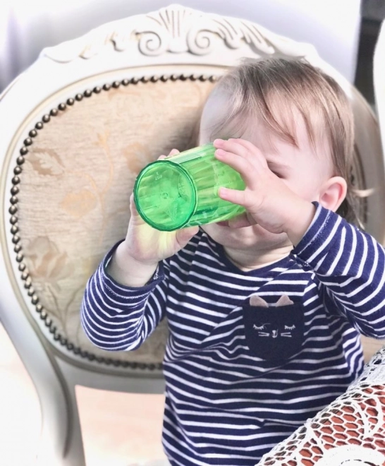 Teach your child to drink from an open cup safely and confidently — the REFLO cup provides flow control for easy training, is unbreakable, suitable from 6 months, has a practical capacity of 170 ml (280 ml total), and is made in the USA.