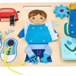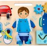 Teaches lacing shoes, zipping up zippers, and handling buckles, which are practical skills.