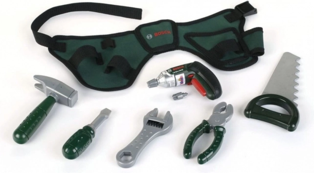 Introducing the Bosch tool play set, which enables your children to develop motor skills and creativity. This set includes various plastic tools, all designed for safety and durability, ideal for young builders. Equipped with tools like a hammer, screwdriver, and saw, this toy provides an authentic construction experience.