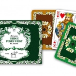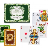 Classic Piatnik playing cards with an oak leaf motif in a practical double pack will delight fans of bridge, poker, and rummy. Each deck offers 55 laminated cards measuring 58 × 89 mm with a weight of 310 g/m², featuring durability, a comfortable grip, and an elegant design rooted in pre-war tradition.