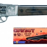 An authentic cowboy rifle from Gonher brings fun and nostalgia to kids and collectors alike. The metal construction, drum mechanism, and capacity for 12 rounds ensure a realistic play experience.