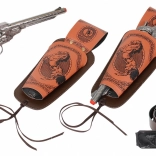The stylish Gonher cowboy set will delight young adventure lovers. Two sturdy metal revolvers with detailed workmanship and belt holsters create an authentic look and feel during play. Compatibility with 8-shot caps delivers a realistic firing effect and even more fun.