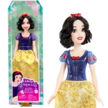 Snow White wears a blue bodice with red accents, a yellow skirt, and a red bow—just like in the movie. Sparkly details give the doll a magical look.