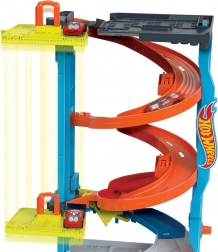In race mode, place 2 cars 1:64 in the elevator, lift them up, trigger the gate, and watch them speed down the spirals to the finish. In single-track mode, the tower reaches approximately 64 cm and delivers plenty of speed and fun. The set is compatible with other HOT WHEELS tracks, so you can easily create a vast city full of stunt challenges (additional sets sold separately). Colors and decorations may vary.