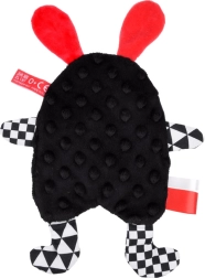 The ergonomic, lightweight shape is easy to hold even in tiny hands. Protruding elements and tags motivate grasping, squeezing, and fine motor practice. The toy is a great companion for the crib, stroller, and travel.