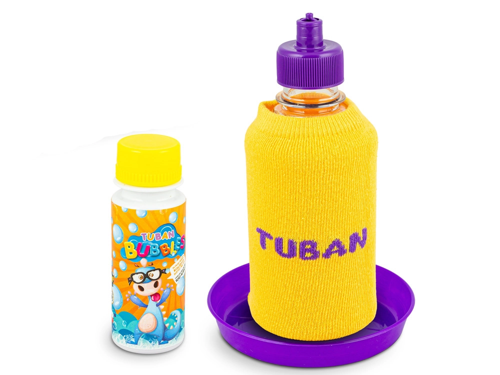 60 ml bubble solution, bottle with cotton sleeve, dish