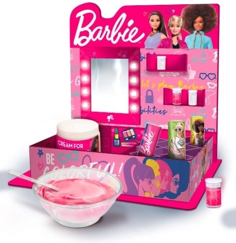 Explore the world of Barbie lip glosses that change color! Have fun creating colorful combinations with the fantastic set included in the package! Thanks to the use of amazing thermochromic and photochromic powder, your glosses change color when exposed to water or light. Endless fun guaranteed! You can assemble a personal Barbie vanity and use it to store your glosses... and more!