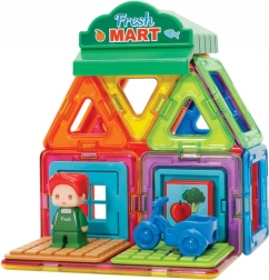 With the Magformers Town Market set, you can build various architectural structures according to your own imagination. It includes 14 magnetic shapes and 8 functional accessories, including a small vendor, allowing you to create semi-exposed sections showing exterior outlines from one side and interior designs from the other.