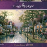 Discover the charm of morning light in a romantic small-town scene by Thomas Kinkade. This puzzle from the Inspired Home series offers subtle details and harmonious colors that draw you into a pleasant atmosphere as you assemble it.
