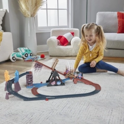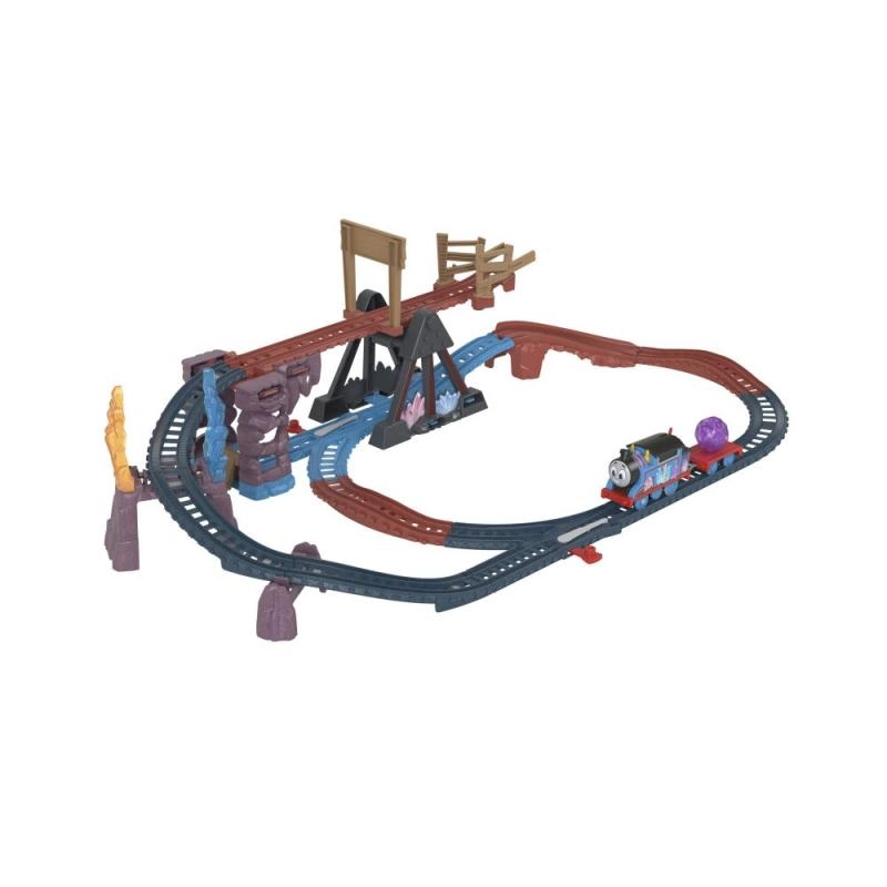 Set off with Thomas on a crystal adventure! This action-packed train set delivers a multi-level track with a drop bridge, junction, and themed “crystal” elements. With a single switch on Thomas’s roof, the engine sets off and delivers cargo to the cave.