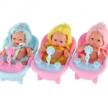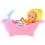 Baby Doll in Bathtub offers an interactive play experience. With a soft body and jointed limbs, children can enjoy realistic and creative play scenarios. Additionally, the doll can be cleaned with a wet cloth, making it an ideal companion for everyday play.